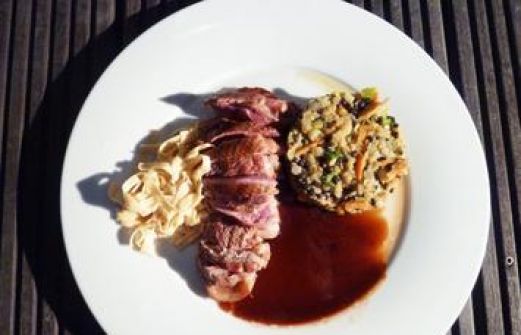 Zutaten für Personen Bild einstellen Ente plus Beilagen 5 Stück Entenbrust 100 g Linsen rot 100 g Beluga-Linsen 100 g Linsen gelb 200 g Bandnudeln 2 Stück Karotten 1 Stück Lauchstange 1 Prise Koriander Bu [...]