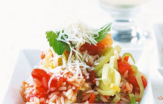 Tomatenreis mit Lauch Zutaten 1 dicke Stange Lauch 400 g Tomaten 2 Knoblauchzehen 1 EL Öl 300 g Langkornreis 400 ml Gemüsebrühe Salz Pfeffer 50 g geriebener Käse guk:similarity-keywords=""> 1 dicke Stange Lauch , 400 g Tomaten , 2 Knoblauchzehen , [...]