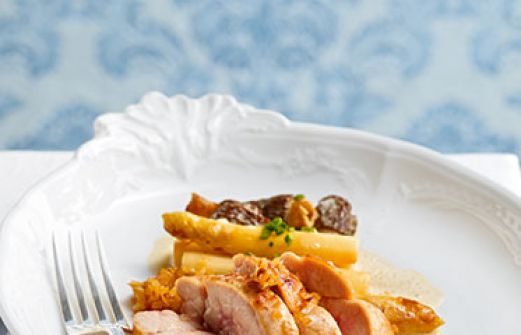 Kalbsbries mit Spargel und Morcheln Zutaten 2 Stück Kalbsbries (je ca. 250 g) 10 g getrocknete Morcheln 500 g weißer Spargel 1 Zwiebel 3 EL Butter 1 Prise Zucker 50 ml trockener Weißwein 50 ml Gemüsebrühe 150 g Sahne Salz schwarzer Pfeffer aus der Mühle 1 TL Butterschmalz [...]