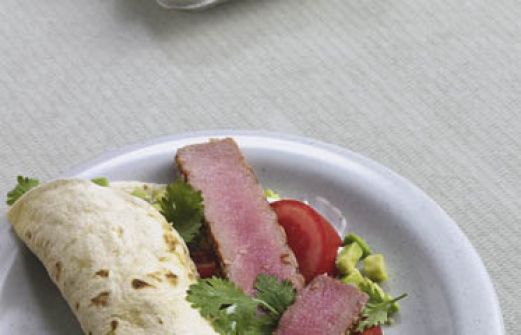 Thunfisch-Wraps mit Avocado und Tomate Zutaten 1 Bio-Limette 80 g Salatmayonnaise Salz 1 reife Avocado 200 g Tomaten 1/2 Bund Koriandergrün 2 Thunfischsteaks (à 150 g) 2 EL Rapsöl Cayennepfeffer 3 TL ungeschälte Sesamsamen 1 Packung Tortilla-Wraps (280 g, 4 Stück) guk:sim [...]