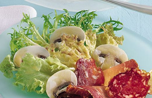 Geräuchertes vom Wild mit Blattsalaten Zutaten 1 sehr kleiner Friséesalat 8 Blatt grüner Lollo Rosso 8 Blatt roter Eichblattsalat 8 kleine Champignons 6 EL Olivenöl 2 EL Estragonessig 2 EL Limettensaft 1 Msp. Senf Salz Pfeffer 100 g Räucherschinken oder Salami vom Wild [...]