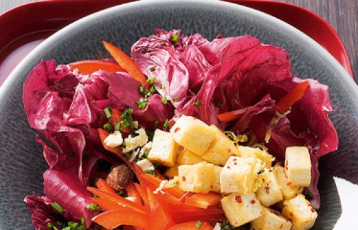 Paprika-Radicchio-Salat mit Tofu Zutaten 1 rote Paprikaschote 1 mittelgroßer Radicchio (ca. 180 g) 1/2 Bund Schnittlauch 1 EL Haselnusskerne 1/2 Bio-Zitrone 1 TL süßer Senf 2 TL Aceto balsamico Salz schwarzer Pfeffer 3 EL Olivenöl 250 g Tofu Chilipulver (oder rosenscharfes [...]