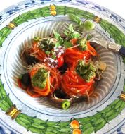 Oliven-Orangen-Pesto Zutaten 1 TL Sesamsamen 1 Knoblauchzehe (nach Belieben) 1/2 Bio-Orange Salz 90 g schwarze Oliven ohne Stein 1 1/2 EL Olivenöl Cayennepfeffer guk:similarity-keywords=""> 1 TL Sesamsamen , 1 Knoblauchzehe (nach Belieben) , 1/2 Bio-Orange , [...]