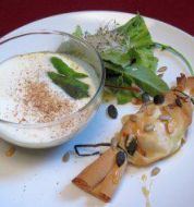 Getreidebratlinge mit Käse und Sprossen Zutaten 100 g Knollensellerie 1 große Möhre 1 Stück Lauch (ca. 60 g) 1 Zwiebel 1 Knoblauchzehe Salz Pfeffer 180 g Dreikorn-Grütze (aus dem Bioladen) 480 ml Gemüsebrühe 100 g Lauchsprossen (ersatzweise Alfalfasprossen) 1 Ei (M) 3 EL [...]