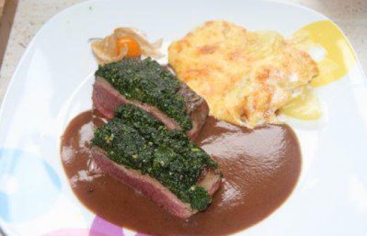 Zutaten für Personen Rezept mit Bild: Lammlachse mit Kräuterkruste und Balsamico - Rotweinsauce Bild einstellen 600 gr. Kartoffel geschält frisch 200 ml Milch 3 gr. Schlagsahne Salz 60 gr. Gouda [...]