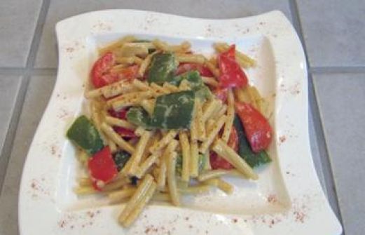 Zutaten für Personen Bild einstellen 1 Zwiebel 1 Knoblauchzehe Salz und Pfeffer 250 gr. Makkaroni 1 Paprika grün 1 Paprika rot 2 EL Öl 1 TL Paprika Gewürz scharf 1 TL Paprika Gewürz edelsüß 100 ml Gemüsebr [...]