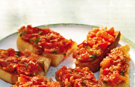 Bruschetta della casa Zutaten 500 g sonnengereifte Tomaten 2 Frühlingszwiebeln 2 Knoblauchzehen 1 kle [...]