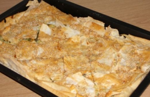 500 gTK Filoteig1 kgZucchini50 gMehl8 ELOlivenöl300 gSchafskäse Feta2 BundDill4 Eier3 ELSesamsamen Salami aus Fleisch ander [...]