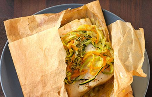 Zander mit Gemüse-Auflage im Päckchen Zutaten 1 kleiner Zucchino 1 mittelgroße Möhre 30 g Diätmargarine [...]
