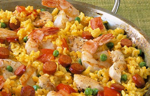 Paella Zutaten 150 g TK-Erbsen 1 rote Paprikaschote 1 große Fleischtomate 1 Zwiebel [...]