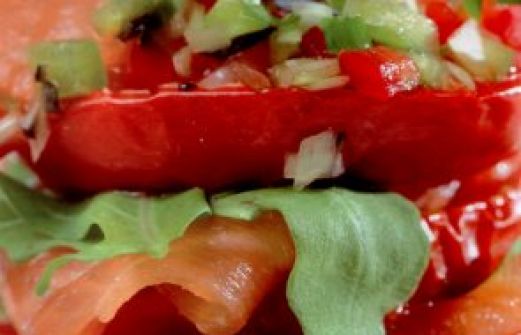 Zutaten für Personen Bild einstellen 6 grossTomaten150 gr.Lachs geräuchert in dùnnescheiben4 Stangensellerie Olivenöl extra vergine Salz Pfeffer Rezept Zubereitung antipasti millefoglie di s [...]