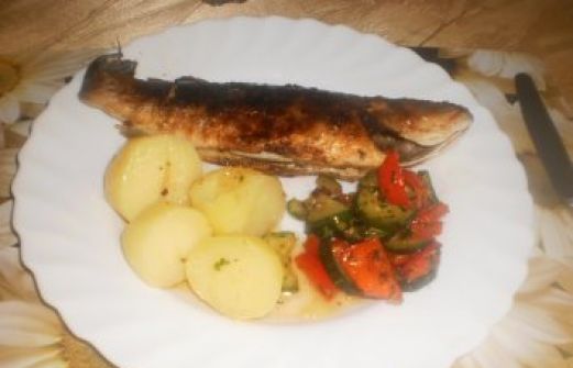 3 Wolfsbarsch á ca. 250-300g1 Zitrone Petersilie gehackt Dill gehackt Pfeffer aus der Mühle Salz Butterschmalz Butter Mehl