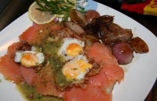 Rezept mit Bild: Räucherlachs mit Honigschalotten auf Toast