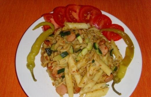 Rezept mit Bild: wurst zucchini pfanne mit nudeln