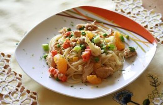 Für die Hähnchen-Gemüse-Soße500 gHähnchenbrust3 ELSojasoße1 ELHonig etwas Ingwerpulver1 BundFrühlingszwiebeln4 Möhren.. oder anderesGemüse1 DoseAprikosen4 ELOlivenö [...]
