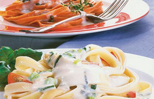 Fettuccine mit Gorgonzolasauce Zutaten 250 g Fettuccine Salz 2 Frühlingszwiebeln 100 g Cocktailtomaten 1/2 Bund Basilikum 100 g Gorgonzola 1 EL Olivenöl 100 g Sahne Pfeffer 250 g Fettuccine , Salz , 2 Frühlingszwiebeln , 100 g Cocktailtomaten , [...]