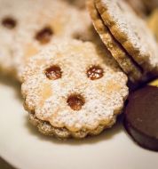 Zutaten für Personen Bild einstellen 200 gr. weiche Butter 100 gr. Puderzucker 1 Päckchen Vanillinzucker 2 Eigelb 250 gr. Mehl 200 gr. gemahlene Mandeln 150 gr. Himbeergelee 2 TL Zitronensaft 3 EL Puderzucker zum Bestäube [...]