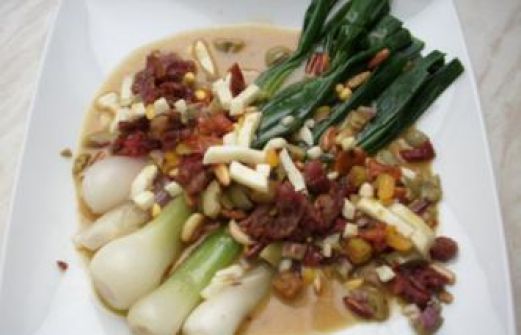 Zutaten für Personen Bild einstellen 1 Bund Lauchzwiebeln 4 Scheiben Pancetta Bauchspeck 1 El Pinienkerne 2 El Tomaten eingelegt in Öl 2 El Olive schwarz 1 Ei hart gekocht 1 El Senf mittelscharf o Olivenöl Ba [...]