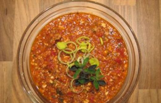 Zutaten für Personen Bild einstellen 250 Gramm Hackfleisch gemischt / faschiertes 250 Gramm Tofu frisch 800 Gramm Tomaten aus der Dose / geschält 250 Gramm Karrotten 250 Gramm Sellerie frisch 1 Stück Lauch 1 Stück Su [...]