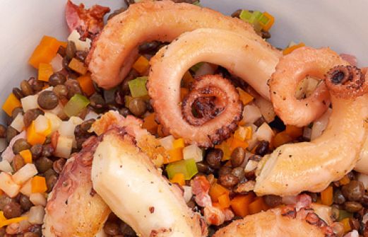 Gebratener Oktopus auf Linsen Zutaten 1 küchenfertiger Oktopus (etwa 1 kg) 1 Bio-Zitrone je 2 Zweige Rosmarin, Thymian und Salbei 2 Lorbeerblätter 2 TL Pfefferkörner Salz 2 EL Butter 1 EL Öl 2 EL Noilly Prat (nach Belieben) Pfeffer 1 Stück Knollensellerie (100 g, ersatzwei [...]