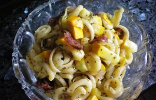 Zutaten für Personen Rezept mit Bild: Pastasalat mit Ibericochorizo Bild einstellen 200 g Pasta nach Wahl 1 mittlere gelbe Zucchini 100 g Ibericochorizo, alternativ eine sehr herzhafte Salami 2 Zehen Knoblauc [...]
