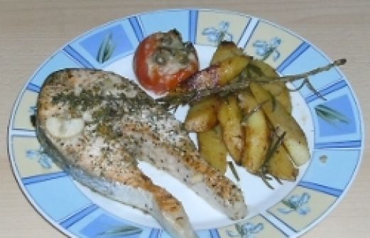 Zutaten für Personen Bild einstellen 4 Stück Lachssteak á 200 - 250g 1 kg Kartoffeln Rosmarin frisch Thymian frisch Salz Zitronenpfeffer Pfeffer weiß Olivenöl 1 Knoblauchzehen gehackt 4 Tomaten frisch [...]