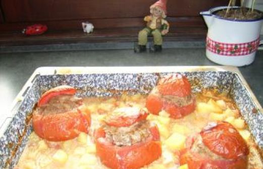 Zutaten für Personen Bild einstellen 4 Tomaten 4 Kartoffeln 400 gr. Hackfleisch gemischt 1 kleine Zwiebel Petersilie ein altes Brötchen Pfeffer,Paprikapulver und Salz etwas Brühe 1 Ei,Tomatenmark Öl [...]