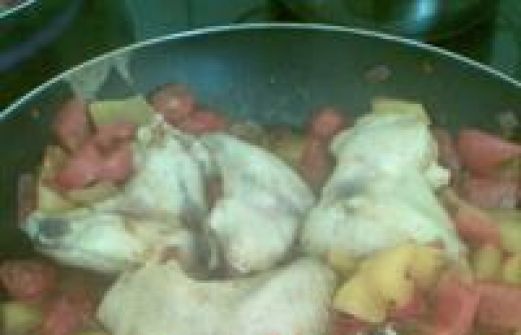 Zutaten für Personen Rezept mit Bild: Letscho mit Huhn Bild einstellen 1 Paprika grün 1 Paprika gelb 1 Paprika rot 1 Zwiebel groß 300 g Tomaten frisch 1 knoblauchzehe 4 Hühnerschenkel Paprika [...]
