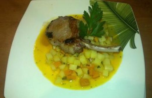 Zutaten für Personen Rezept mit Bild: Iberico-Schweinekotelettes auf Kürbis-Kartoffelgemüse Bild einstellen Für das Fleisch: 2 Stück Kotelettes vom Iberico-Schwein je ca. 140 gr Prise Meersalz aus der Mühle [...]