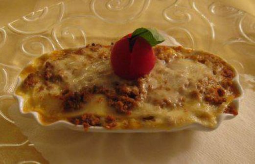 Zutaten für Personen Bild einstellen 300 gr. Hackfleisch gemischt 16 Scheibe Lasagneblätter 1 Stk. Zwiebel 2 Stk. Knoblauchzehen 4 EL Tomatenmark 1 Prise Salz 1 Prise Pfeffer 1 Msp Oregano 1 Msp Thymian 1 Ms [...]