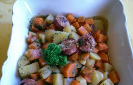 Menge Zutat 5 St Mettwürste 500 g Möhren 500 g Kartoffeln 2 St Zwiebeln 1 Stg Porree 500 ml Brühe 1 EL [...]