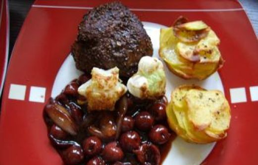 Zutaten für Personen Bild einstellen 4 Rinderfiletsteaks a 150 - 180 g Für das Gartin 600 g Kartoffeln 50 g Butter zerlassen Für die Kirschschalotten 1 Glas Sauerkirschen 8 Schalotten 3 EL Balsamico-Creme-Essig [...]