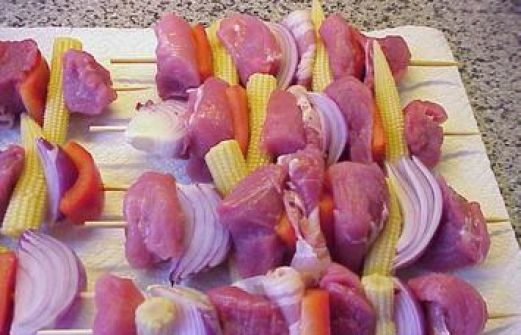 Zutaten für Personen Rezept mit Bild: Schaschlikspieße mit Rosmarin-Kartoffeln Bild einstellen 750 gr TK-Rosmarin-Kartoffel-Spalte n z.B. Bofrost 1 Glas Maiskölbchen 2 rote Zwiebeln 2 rote Paprikaschoten 50 [...]