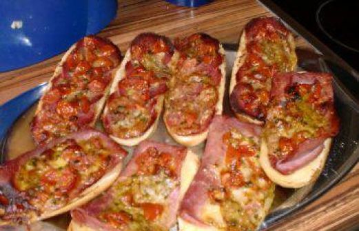 Zutaten für Personen Rezept mit Bild: Snack: Zweierlei Baguette-Brötchen,überbacken! Bild einstellen 4 große Baguette-Brötchen, zum selberbacken, quer geteilt 20 Scheiben würzige Salami, dünn geschnitten 4 große [...]