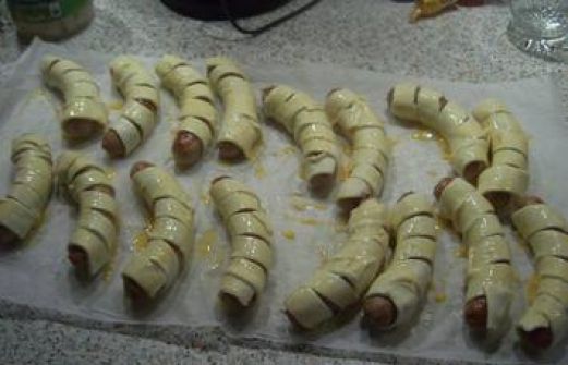Zutaten für Personen Rezept mit Bild: Würstchen im Blätterteigmantel Bild einstellen 10 Stück Thüringer Bratwurst 1 Packung frischer Blätterteig 1 Eigelb 1 Esslöffel Milch Rezept Zubereitung Wür [...]