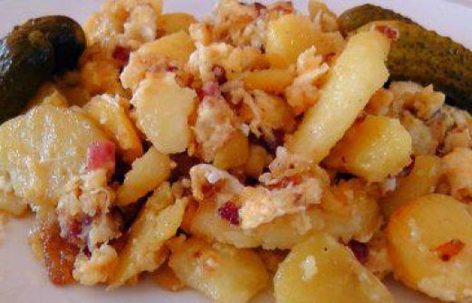 Zutaten für Personen Rezept mit Bild: Bauernfrühstück Bild einstellen 500 g Kartoffeln festkochend 4 Bioland Eier 100 g durchwachsender Speck gewürfelt Pfeffer, Pommes-Salz 1 Zwiebel fein gewürfelt [...]