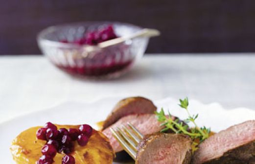 Rehrücken mit karamellisierten Birnen Zutaten 2 Rehrückenfilets (à 400 g) 3 Nelken 1 Zimtstange je 10 Wacholderbeeren, schwarze Pfefferkörner und Pimentkörner 250 g Preiselbeeren 125 ml roter Portwein 2 Birnen (à ca. 150 g, z. B. Williams Christ) 1 1/2 EL Butter 1 TL Zucker [...]
