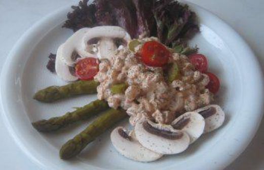 Zutaten für Personen Bild einstellen 100 g Crème fraîche 2 Eßl Tomatenmark 2 Eßl Dill getrocknet 2 cl Cognac 4 Spritzer Worcestersoße Zucker , Salz 200 g Krabben , küchenfertig 6 Cocktailtomaten, halbiert 6 Sta [...]