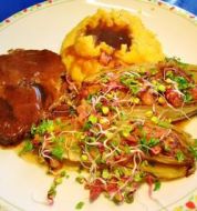 Zutaten für Personen Bild einstellen 500 g Nudeln 220 g Speckscheiben 1 Stück rote Paprika 1 Stück grüne Paprika 300 g Aubergine 60 g geriebener Parmesan 0.125 L halbfette Sahne 2 EL Öl Salz Pfeffer schwa [...]