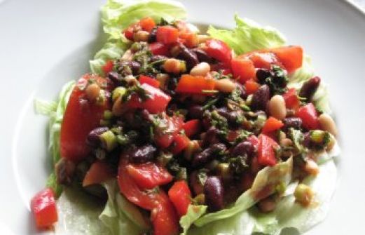 Zutaten für Personen Rezept mit Bild: Bohnen auf Eisbergsalat mit Tomaten-Dressing Bild einstellen 1 Eisbergsalat 1 Bund Petersilie 1 Bund Lauchzwiebeln 9 EL Kidneybohnen 9 EL weiße Bohnen 1 rote Papri [...]