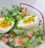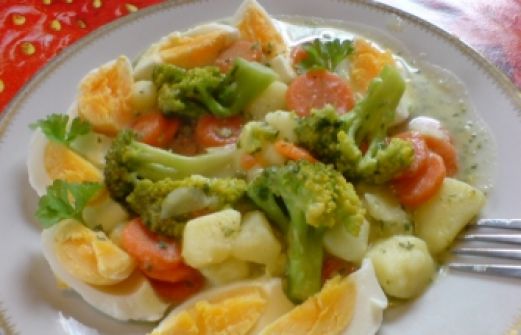 Zutaten für Personen Rezept mit Bild: Raffiniertes Eier-Ragout mit Gemüse Bild einstellen 500 g Kartoffeln 400 g Möhren 400 g Brokkoli Salz 8 Eier 2 Tüten Kräuter-Käse-Soße für je 1/4 Lit [...]