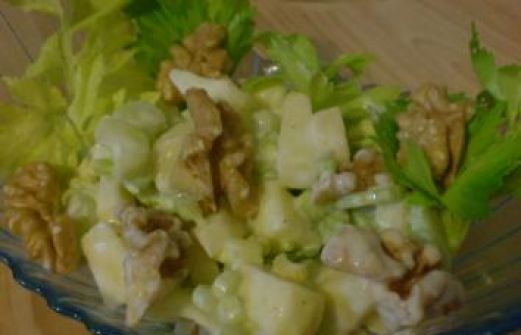 Zutaten für Personen Rezept mit Bild: Apfelsalat mit Staudensellerie Bild einstellen 3 säuerliche Äpfel 4 Esslöffel Zitronensaft 250 g Staudensellerie 250 ml Brühe 75 g Walnusskernhälften 150 g J [...]