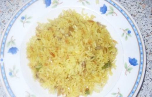 Menge Zutat 1 St Hähnchenschenkel, gekocht 200 g Reis, gekochter 2 TL Curry, gemahlen 1 St Frühlingszwiebel etwas Öl Etwas Öl in eine P [...]