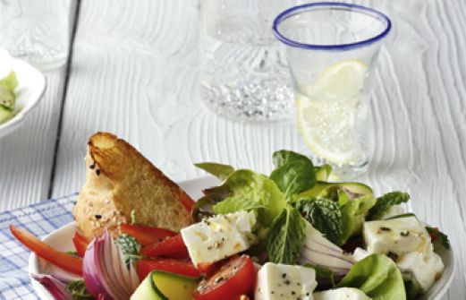 Griechischer Salat Zutaten 2 TL Dijonsenf 1 EL Honig 2 EL Zitronensaft 1 EL Aceto balsamico 1 Knoblauchzehe 6 EL Olivenöl Salz Pfeffer 1 kleiner Zucchino (ca. 200 g) 1 rote Zwiebel 125 g Pflücksalat 200 g Cocktailtomaten 1 rote Paprikaschote 1 Handvoll Minzeblätter 1 [...]