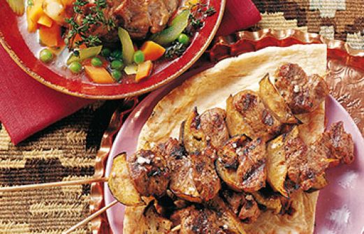 Lammspieße mit Auberginen Zutaten 600 g Lammfleisch aus der Keule 8 EL Olivenöl 3 möglichst dünne, lange Auberginen Öl zum Bepinseln Salz schwarzer Pfeffer, frisch gemahlen 8 Grillspieße 600 g Lammfleisch aus der Keule , 8 EL Olivenöl , 3 möglichst dünne, lan [...]