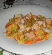 LACHSNUDELN (für 2 Personen) Zutaten 250 gr breite oder halbbreite Nudeln (oder Nüdeli, je nach Vorliebe 2 Scheiben Lachsfilet (frisch oder tief gefroren) 1 TL Olivenöl 1 Schalotte 1/2 Becher Sahne ca. 10 gr Butter Salz, Pfeffer Frische Kräuter nach Belieben (z.B. Petersilie, Bärl [...]