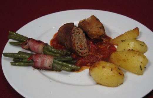 Zutaten für Personen Bild einstellen 2 Zwiebeln 3 Knoblauchzehen 1 rote Paprikaschote 50 g grüne Oliven, entsteint 30 g Mandeln 6 Rouladenscheiben à ca. 225 g 2 EL Öl 1 Dose Pizzatomaten 200 ml trockener Sherry [...]
