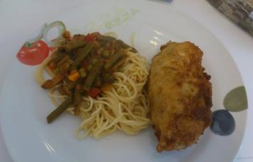 Zutaten für Personen Bild einstellen 4 Stück Hähnchenbrust, paniert und feritg gebacken 1 mittelgrosse Zwiebel, gehackt 4 Zehen Knoblauch, fein gehackt 500 ml passierte Tomaten 100 g Italienische Kräuter TK 50 g grüne Bohn [...]