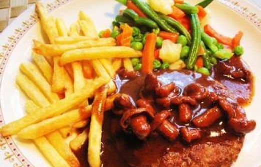 Zutaten für Personen Rezept mit Bild: Hamburger Hacksteak mit einer Rotwein-Pfifferlingssoße Bild einstellen 2 Portionen Backofen-Fritten 2 kl. Portionen Buntes Sommergemüse 20 g Markenbutter 1 Prise Salz [...]