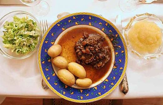 Zutaten für Personen Bild einstellen 1 ¼ kg Pferde Fleisch oder "Falsches Filet" vom Rind 2 kg Kartoffeln ungeschält frisch Brandweinessig und Wasser (im Verhältnis 2:1) 3 Blatt Lorbeer 6 Gewürznelken 4 mittelgross [...]